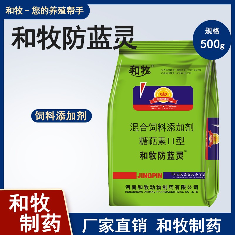 商品名称:和牧制药防蓝灵 饲料添加剂糖萜素对抗蓝圆免疫力抗体流产呼吸道耳朵变蓝特异免疫 维生素 商品编号:215 品牌:和牧制药 上架时间:2020-10-12 商品净重:500克 产品批文号:Q/HHM019-2023