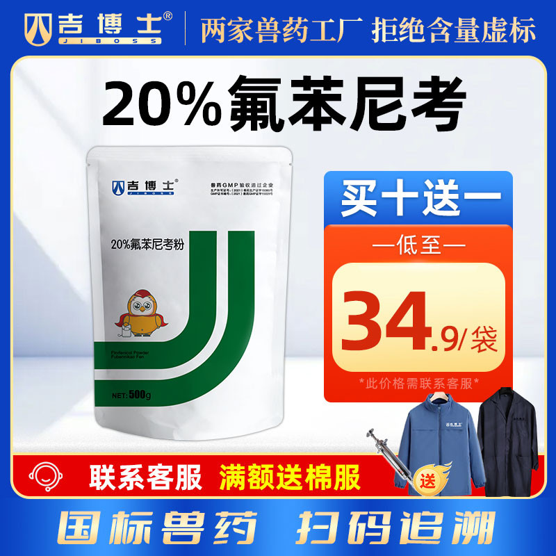 - 商品名称:【吉博士】20%氟苯尼考粉500g 白痢肠炎呼吸大肠埃希菌