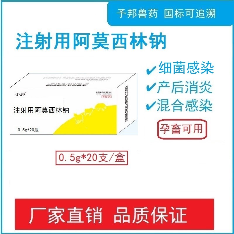 - 商品名称:【予邦】0.5g注射用阿莫西林钠20支 兽用兽药 国标可追溯 抗生素 猪牛羊马犬可用孕畜可用