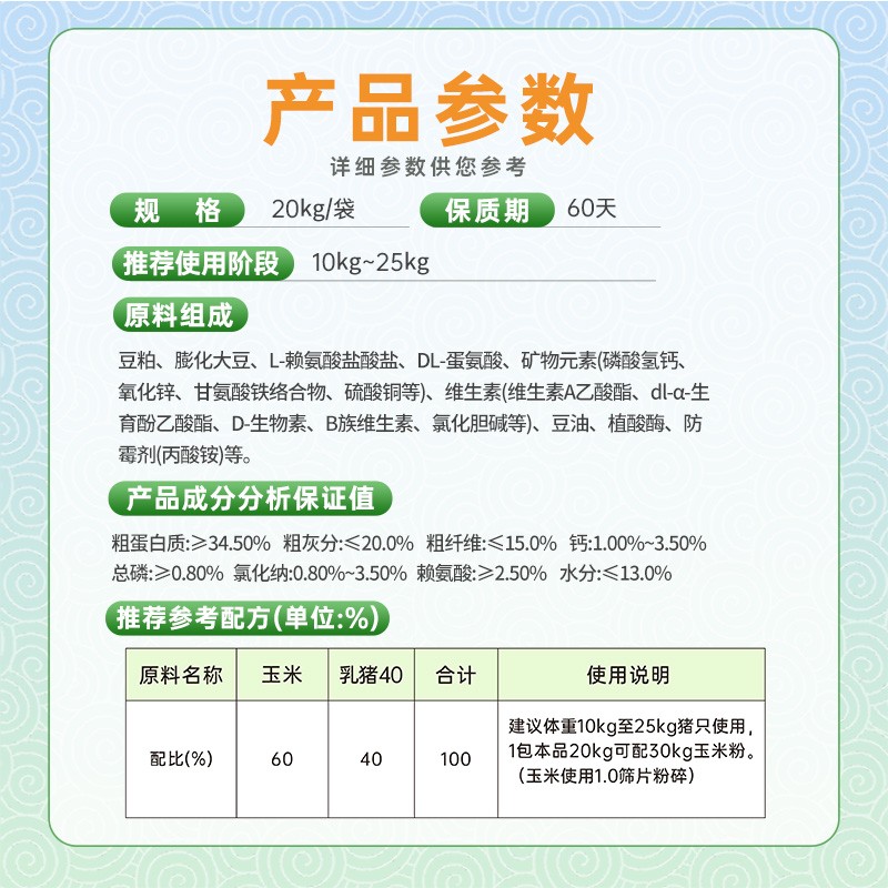 - 商品名称:【扬翔饲料】 浓缩料 40%乳猪浓缩饲料 翔云-乳猪40
