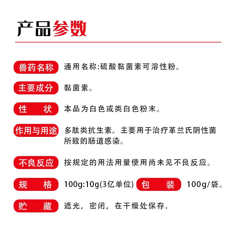 - 商品名称:开扬 10%硫酸黏菌素可溶性粉100g 拉稀腹泻 仔猪黄白痢 肠炎 止痢 猪用 兽用