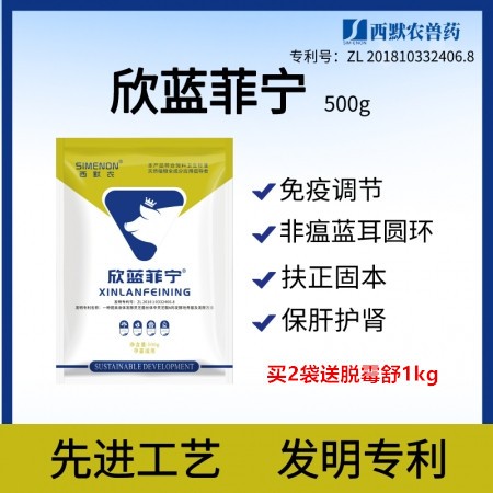 商品名称:【西默农】欣蓝菲宁500g 非瘟蓝耳圆环 免疫调节、扶正固本、保肝护肾、泪斑死皮 商品编号:ZHUEJPH0002317772 品牌:西默农 上架时间:2024-04-02 商品净重:500克