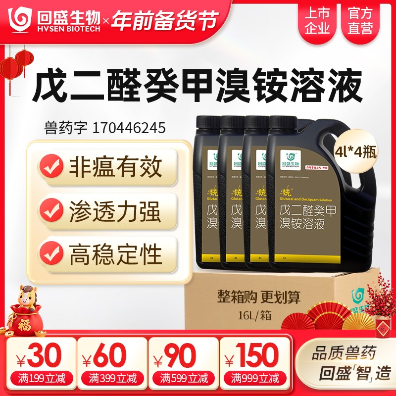 - 商品名称:【整箱惠购】回盛生物 统 戊二醛癸甲溴铵溶液4000ml*4瓶 猪场消毒带畜禽消毒消毒液消毒水消毒剂