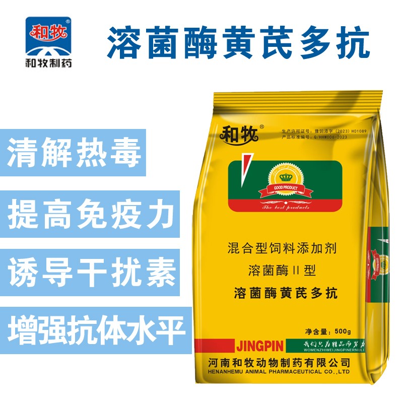 - 商品名称:【和牧制药】溶菌酶黄芪多抗500克一袋,免疫力干扰素抗体水平溶菌酶适口性好气味香甜