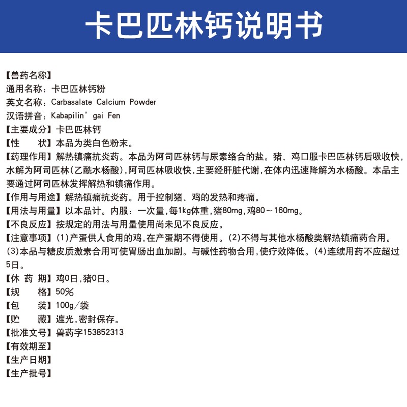 - 商品名称:【吉博士】50%卡巴匹林钙可溶性粉100g 解热镇痛发热抗炎疼痛