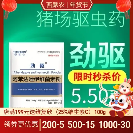 【西默农】劲驱 阿苯达唑伊维菌素粉,驱虫药 100g 体内外驱虫线虫吸虫蛔虫绦虫等